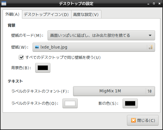 1. 概要 基本的な操作やカスタマイズ方法について記述します。 2. 共通事項 「LXDE」に関する共通的な操作やカスタマイズ方法に関しては、「LXDE - 共通事項」をご参照ください。 本プラットフォームでは、下記の項目を適用しました。 ・画面キャプチャ ・フォント ・パネル 画面キャプチャには、「xfce4-screenshooter」を使用します。 フォントは、下記を設定しました。