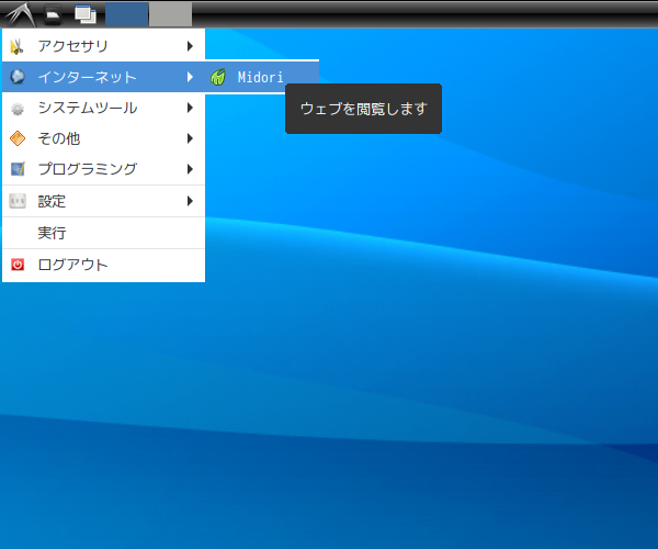 1. 概要 ブラウザとして、軽いので、「Midori」を使用します。 2. インストール 「OctoPkg」で、「midori」を検索して、インストールします。 3. 起動 「スタート」→「インターネット」→「Midori」