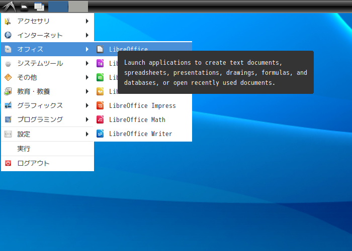 1. 概要 オフィススイートとして、「LibreOffice」を使用します。 2. インストール 「OctoPkg」で、「ja-libreoffice」を検索して、インストールします。 3. 起動 「スタート」→「オフィス」→「LibreOffice Start Center」