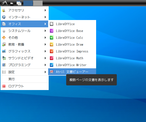 1. 概要 ドキュメントビューアとして。「Atril」を使用します。 2. インストール 「OctoPkg」で、「atril」を検索して、インストールします。 3. 起動 「スタート」→「オフィス」→「Artil ドキュメントビューア」