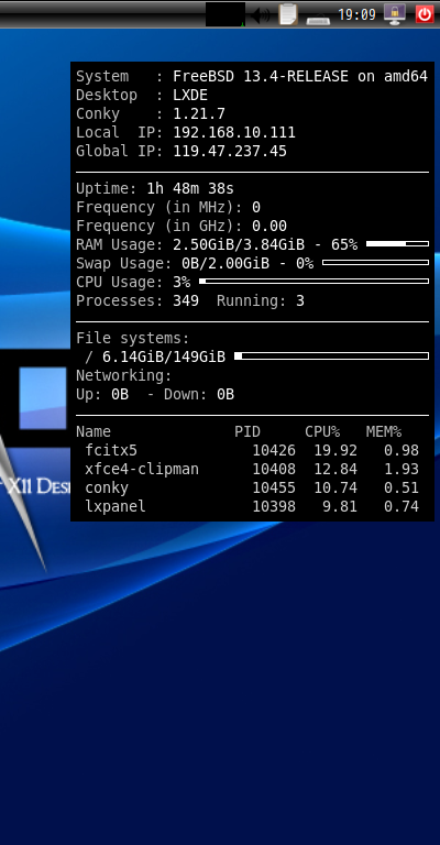 本ページ以外の詳細なことに関しては、「共通事項 - タスクマネージャ Conky - FreeBSD の設定」をご参照ください。