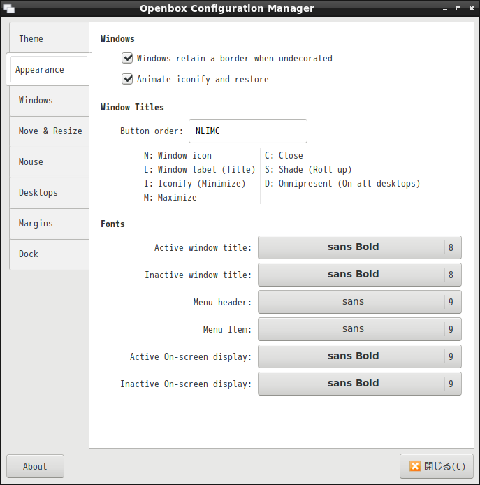 「Openbox Configration Manager」の方は、フォントを設定しようとすると、こけてしまいます。 今まで、こんなことは、なかったんだけどなぁ。