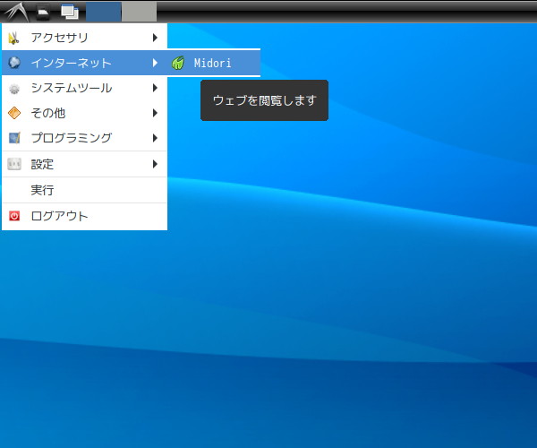 1. 概要 ブラウザとして、軽いので、「Midori」を使用します。 2. インストール 「OctoPkg」で、「midori」を検索して、インストールします。 3. 起動 「スタート」→「インターネット」→「Midori」