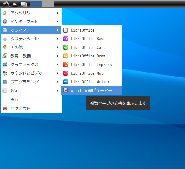 1. 概要 ドキュメントビューアとして。「Atril」を使用します。 2. インストール 「OctoPkg」で、「atril」を検索して、インストールします。 3. 起動 「スタート」→「オフィス」→「Artil ドキュメントビューア」