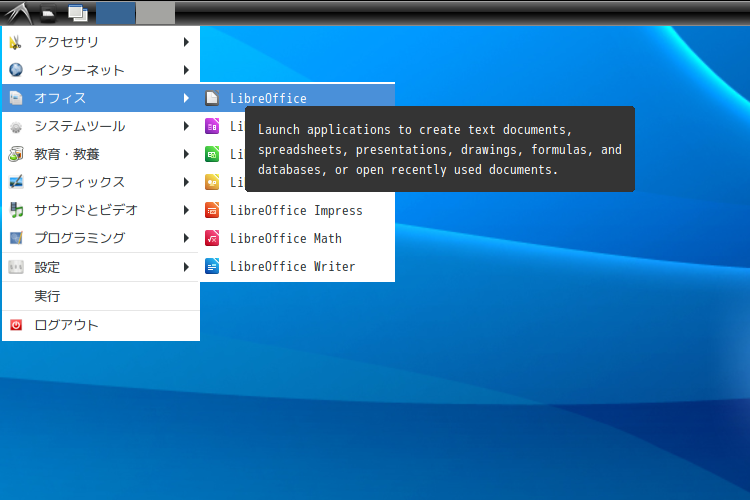 1. 概要 オフィススイートとして、「LibreOffice」を使用します。 2. インストール 「OctoPkg」で、「ja-libreoffice」を検索して、インストールします。 3. 起動 「スタート」→「オフィス」→「LibreOffice Start Center」