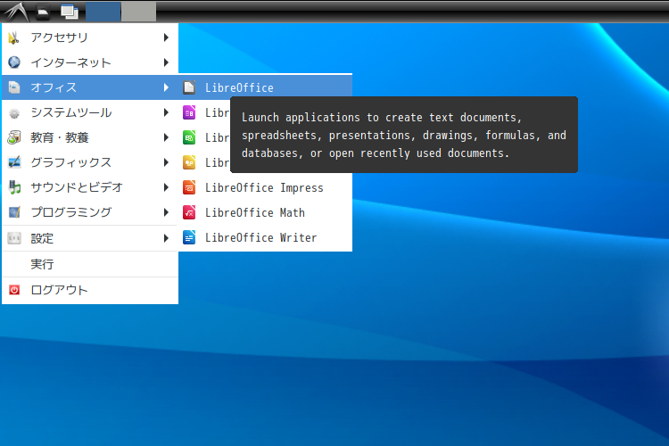 「スタート」→「オフィス」→「LibreOffice Start Center」
