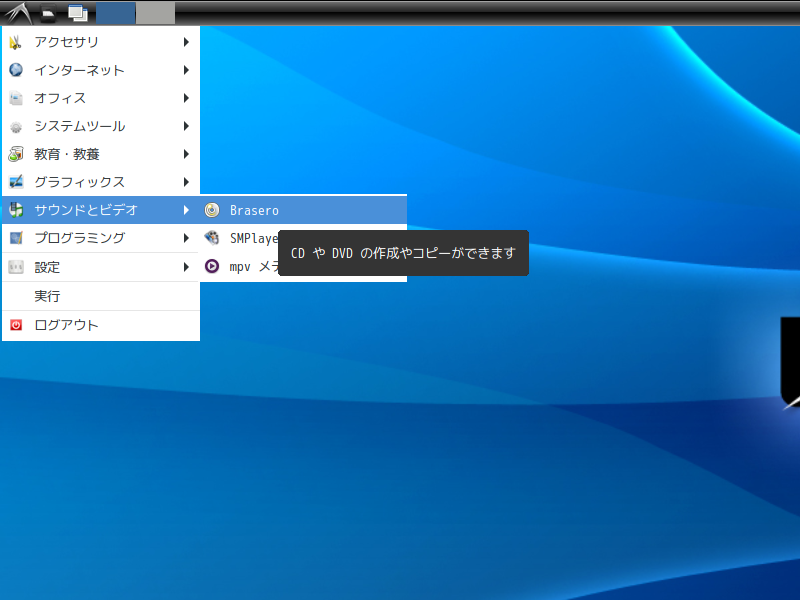 「スタート」→「サウンドとビデオ」→「Brasero」