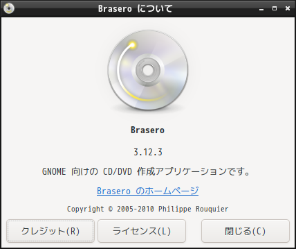 「Brasero」は、光学ディスク(CD・DVD)のライティングソフトです。