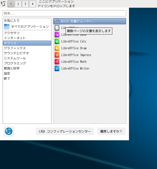 1. 概要 ドキュメントビューアとして。「Atril」を使用します。 2. インストール 「OctoPkg」で、「atril」を検索して、インストールします。 3. 起動 「スタート」→「オフィス」→「Artil ドキュメントビューア」