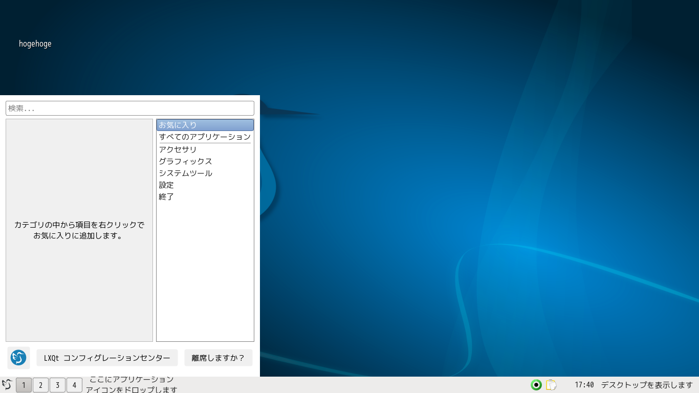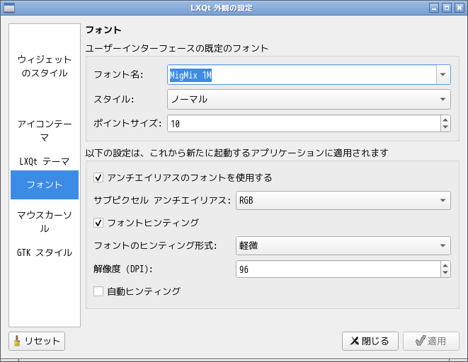 「LXQt」に関する共通的な操作やカスタマイズ方法に関しては、「LXQt - 共通事項」をご参照ください。  本プラットフォームでは、下記の項目を適用しました。 ・ウィンドウマネージャ ・画面キャプチャ ・フォント ・メニュー ・ログアウト時の確認 ・パネル ・アイコンテーマ  アイコンテーマは、「LXDE」のものをインストールして設定しました。  「root」ユーザ権限で。