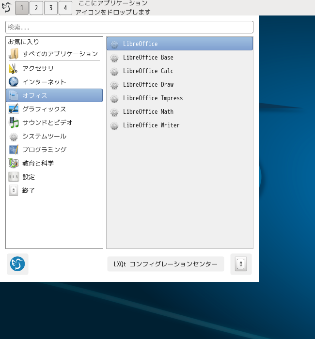 1. 概要 オフィススイートとして、「LibreOffice」を使用します。 2. インストール 「OctoPkg」で、「ja-libreoffice」を検索して、インストールします。 3. 起動 「スタート」→「オフィス」→「LibreOffice」