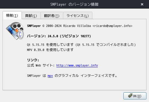 起動直後の状態です。 ビデオコンテンツを再生してみました。 快適に再生できます。 2024年10月15日の時点で、下記のバージョンでした。 |