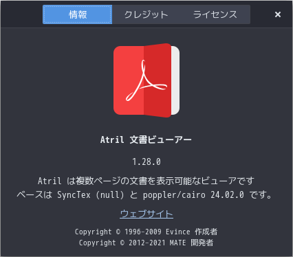 1. 概要 ドキュメントビューアとして、「Atril」を使用します。 2. インストール 「OctoPkg」で、「atril」を検索して、インストールします。 3. 起動 「スタート」→「オフィス」→「ドキュメントビューア」