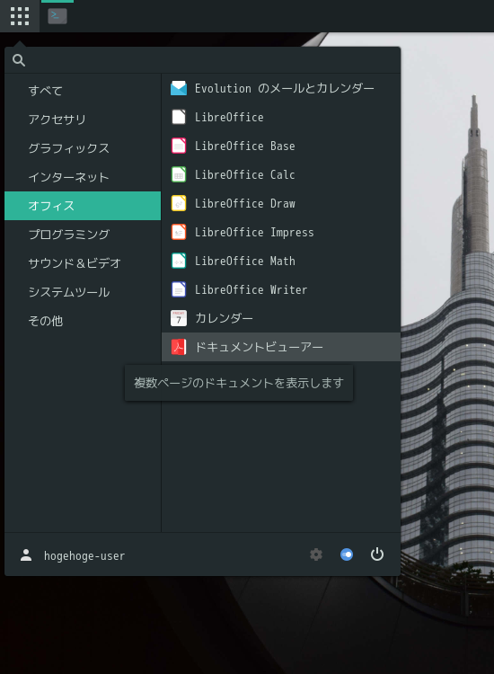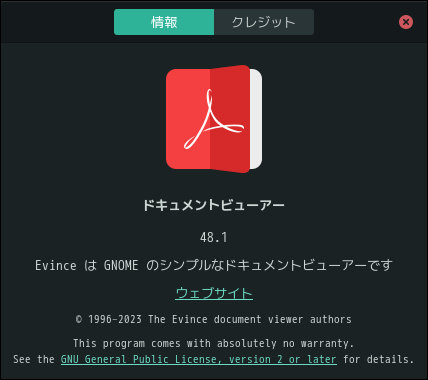 1. 概要 ドキュメントビューアとして、「Evince」を使用します。 「Evince」は、デフォルトでインストールされています。 2. 起動 「スタート」→「オフィス」→「ドキュメントビューア」