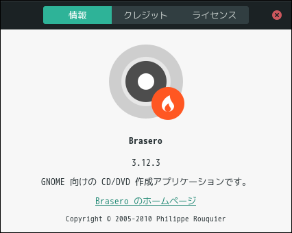 1. 概要 光学ディスク(CD・DVD)のライティングソフトとして、「Brasero」を使用します。 2. インストール 「OctoPkg」で、「brasero」を検索して、インストールします。 インストール直後は、起動できないことがあります。 そういうときは、ログインしなおすと、起動できるようになります。 3. 起動 「スタート」→「サウンドとビデオ」→「Brasero」