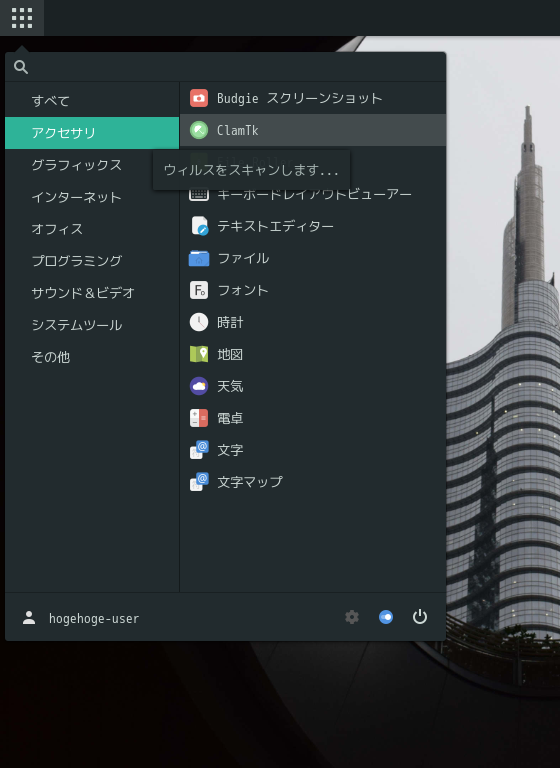 アンチウイルスソフトとして、「ClamTk」を使用します。