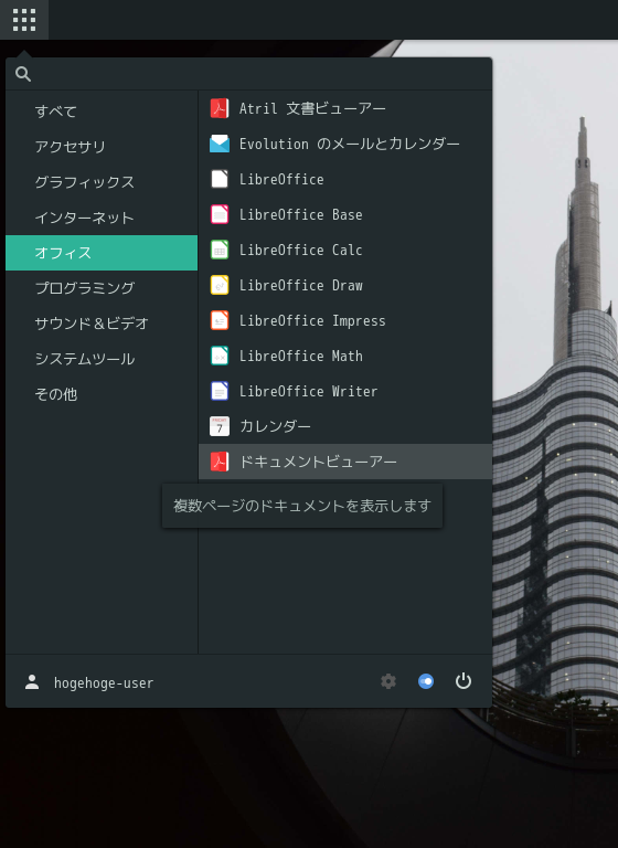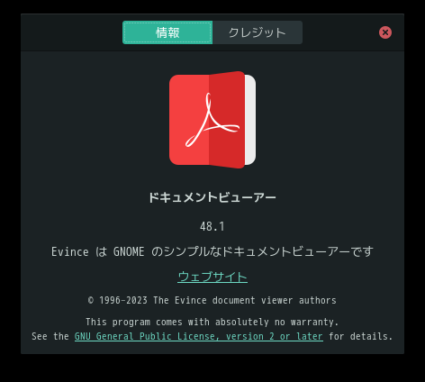 1. 概要 ドキュメントビューアとして、「Evince」を使用します。 「Evince」は、デフォルトでインストールされています。 2. 起動 「スタート」→「オフィス」→「ドキュメントビューア」