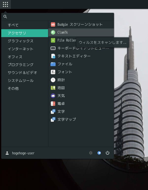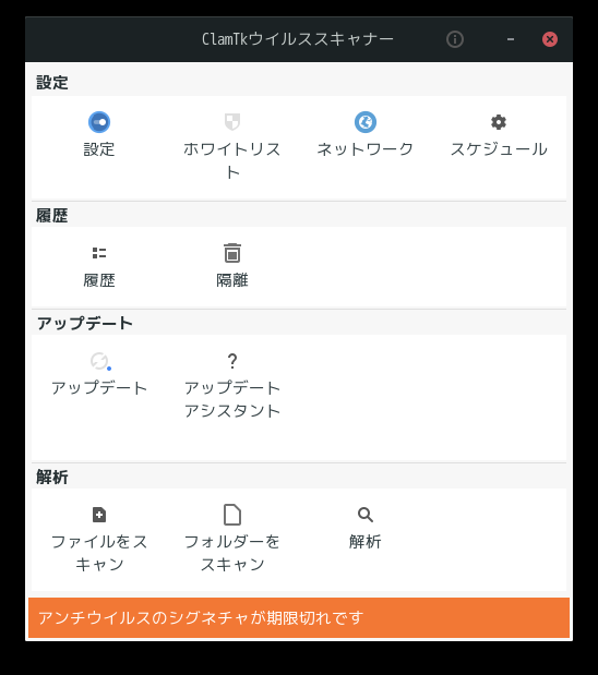 操作については「アンチウイルスソフト ClamTk」を参照してください。