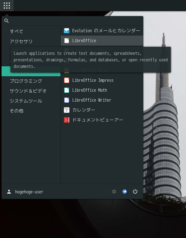 オフィススイートとして、「LibreOffice」を使用します。
