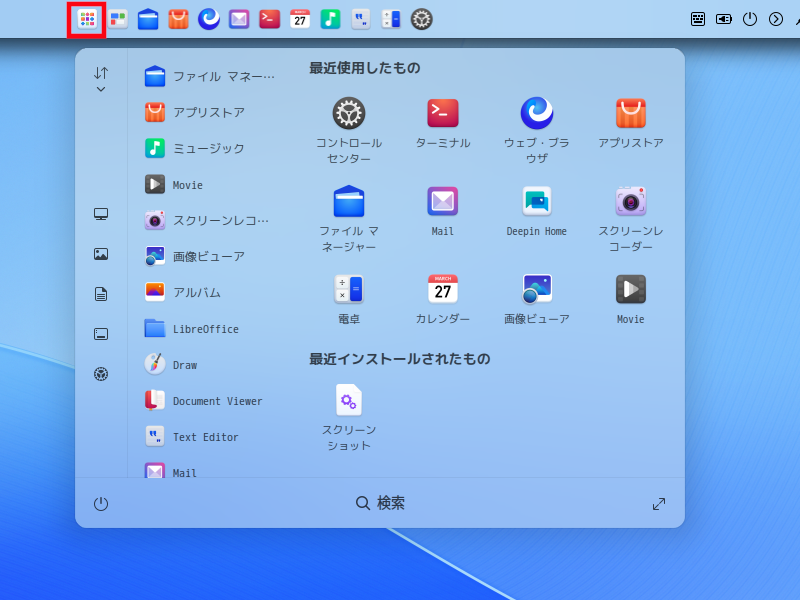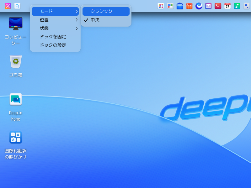 「deepin 25.0.10」では、メニューが元あったところに、別のものがついておる。