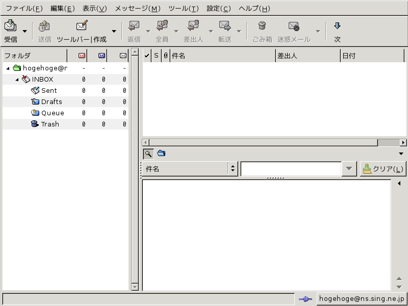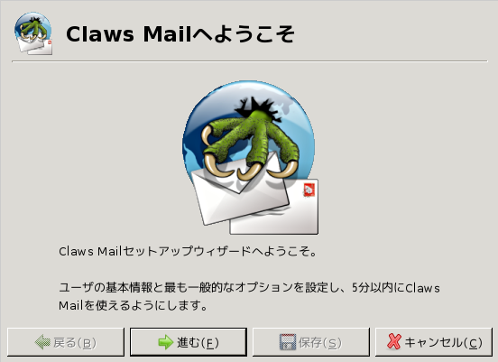初回起動時は「設定ウィザード」から始まります。 起動直後の状態です。 2024年12月9日の時点で、下記のバージョンでした。 「設定ウィザード」他、操作方法については、「メールクライアント - Claws Mail」をご参照ください。 |