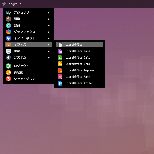 1. 概要 オフィススイートとして、「LibreOffice」を使用します。 2. インストール 「OctoPkg」で、「ja-libreoffice」を検索してインストールします。 3. 起動 「スタート」→「オフィス」→「LibreOffice」