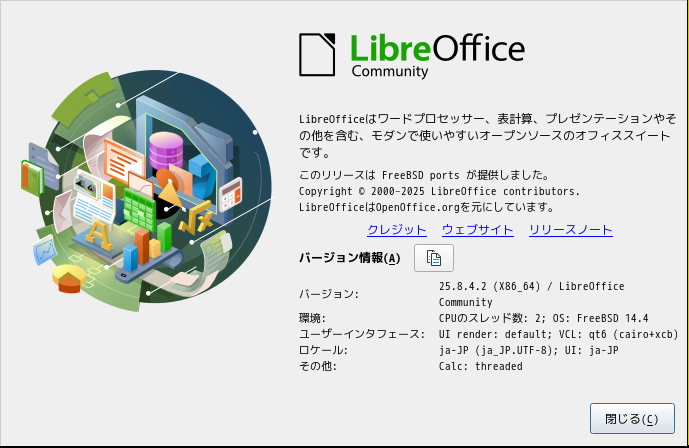 1. 概要 オフィススイートとして、「LibreOffice」を使用します。 2. インストール 「OctoPkg」で、「ja-libreoffice」を検索してインストールします。 3. 起動 「スタート」→「オフィス」→「LibreOffice」