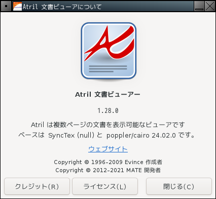1. 概要 ドキュメントビューアとして、「Atril」を使用します。 2. インストール 「OctoPkg」で、「atril」を検索して、インストールします。 3. 起動 デスクトップ上右クリック →「オフィス」→「Atril」