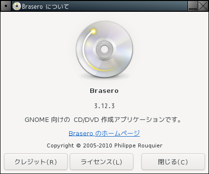 1. 概要 「Brasero」は、光学ディスク(CD・DVD)のライティングソフトです。 2. インストール 「OctoPkg」で、「brasero」を検索して、インストールします。 3. 起動 「スタート」→「マルチメディア」→「Brasero」
