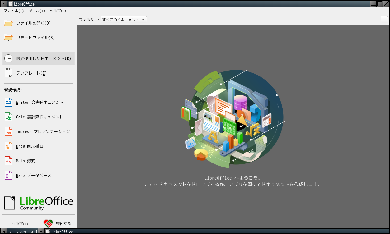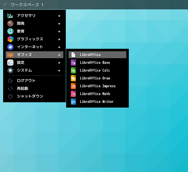 1. 概要 オフィススイートとして、「LibreOffice」を使用します。 2. インストール 「OctoPkg」で、「ja-libreoffice」を検索して、インストールします。 3. 起動 「スタート」→「オフィス」→「LibreOffice」