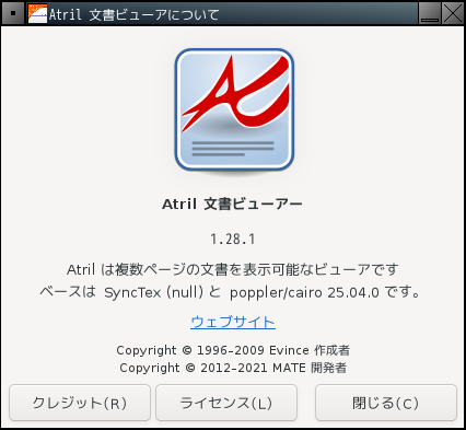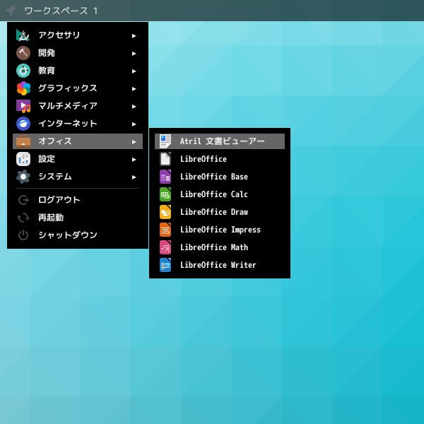 1. 概要 ドキュメントビューアとして、「Atril」を使用します。 2. インストール 「OctoPkg」で、「atril」を検索して、インストールします。 3. 起動 デスクトップ上右クリック →「オフィス」→「Atril」