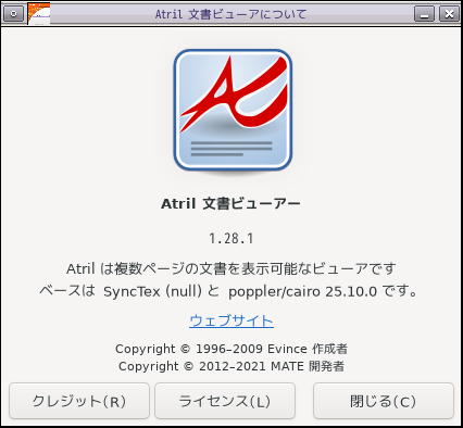 1. 概要 ドキュメントビューアとして、「Atril」を使用します。 2. インストール 「OctoPkg」で、「atril」を検索して、インストールします。 3. 起動 デスクトップ上右クリック →「オフィス」→「Atril」