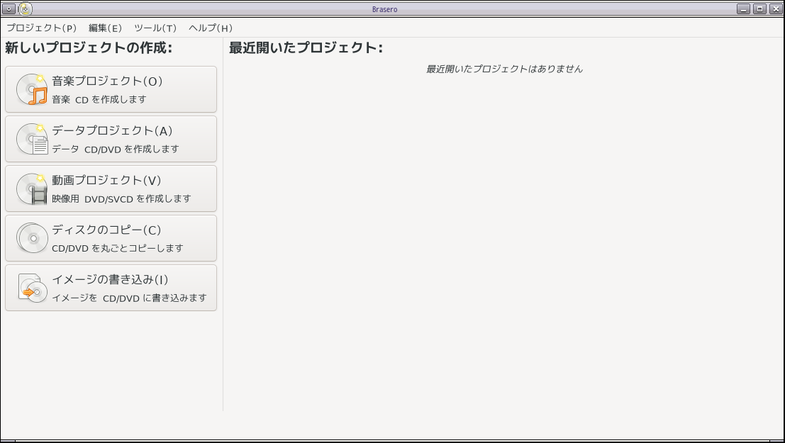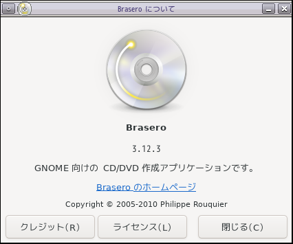 1. 概要 「Brasero」は、光学ディスク(CD・DVD)のライティングソフトです。 2. インストール 「OctoPkg」で、「brasero」を検索して、インストールします。 3. 起動 「スタート」→「マルチメディア」→「Brasero」