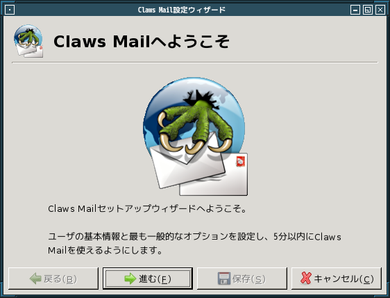 初回起動時は「設定ウィザード」から始まります。 起動直後の状態です。 2024年12月12日の時点で、下記のバージョンでした。 「設定ウィザード」他、操作方法については、「メールクライアント - Claws Mail」をご参照ください。 |