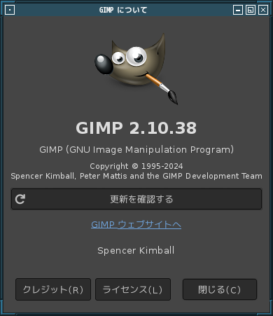 起動直後の状態です。 2025年6月20日の時点で、下記のバージョンでした。 操作については、「画像編集ソフト GIMP2」に掲載しています。 上記は簡単なものですので、詳細なものがほしい方は、各所に初歩の手引きから応用編までありますので、そちらを参考にしてください。 |