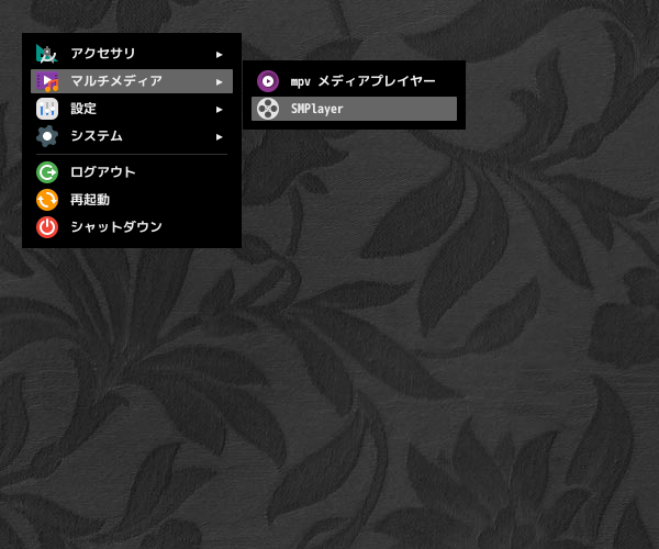 「デスクトップ上クリック」→「マルチメディア」→「SMPlayer」