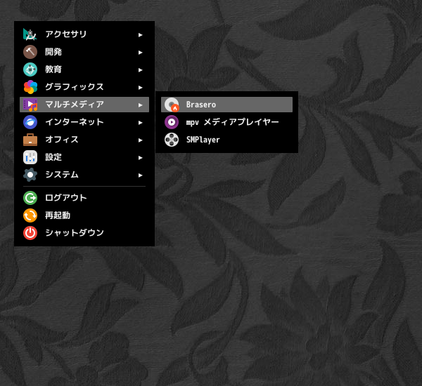 「デスクトップ上クリック」→「マルチメディア」→「Brasero」