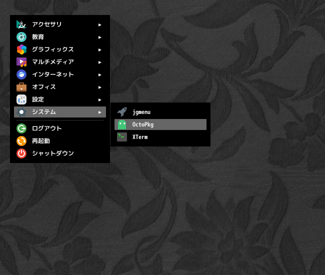 「デスクトップ上クリック」→「システム」→「OctoPkg」