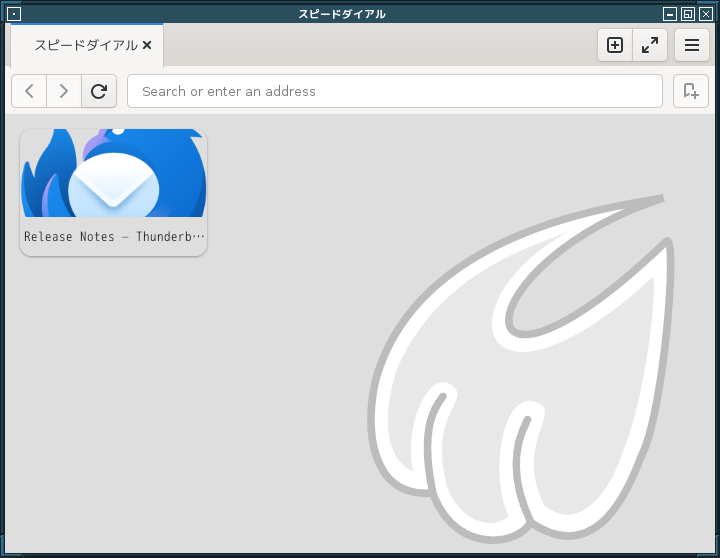 起動直後の状態です。 (誤って、一度、「Thunderbird」のサイトを開いちゃったので、変なのがのっかってますが)