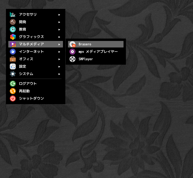 「デスクトップ上クリック」→「マルチメディア」→「Brasero」