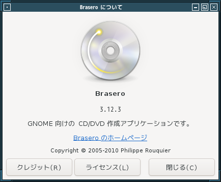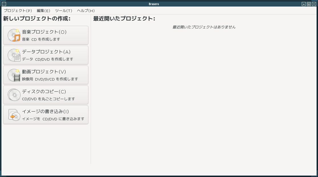 「Brasero」は、光学ディスク(CD・DVD)のライティングソフトです。