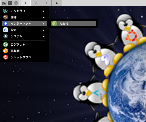 1. 概要 ブラウザとして、軽いので、「Midori」を使用します。 2. インストール 「OctoPkg」で、「midori」を検索して、インストールします。 3. 起動 「スタート」→「ネットワーク」→「Midori」