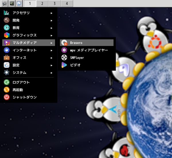 「スタート」→「マルチメディア」→「Brasero」