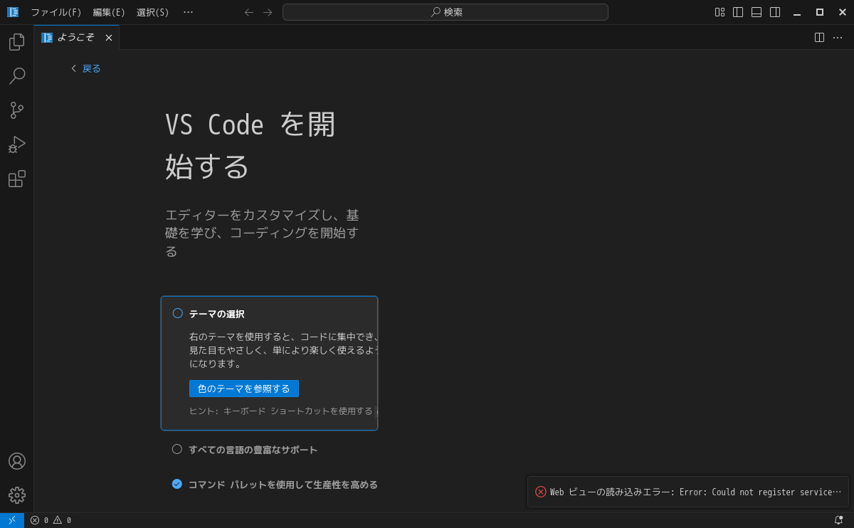 日本語化して、起動した直後の状態です。 2025年6月24日の時点で、下記のバージョンでした。 日本語化、他、「Visual Studio Code」の操作等については「統合開発環境 Visual Studio Code」をご参照ください。 |