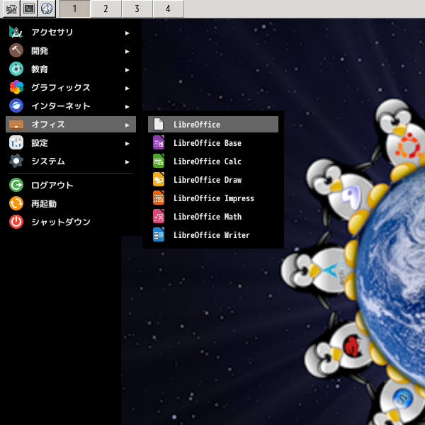 1. 概要 オフィススイートとして、「LibreOffice」を使用します。 2. インストール 「OctoPkg」で、「ja-libreoffice」を検索して、インストールします。 3. 起動 「スタート」→「オフィス」→「LibreOffice」
