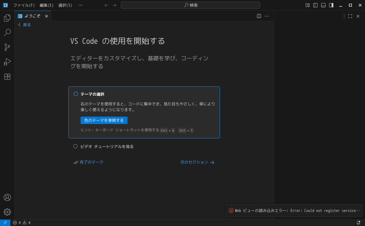 日本語化して、起動した直後の状態です。 2025年12月19日の時点で、下記のバージョンでした。 日本語化、他、「Visual Studio Code」の操作等については「統合開発環境 Visual Studio Code」をご参照ください。 |