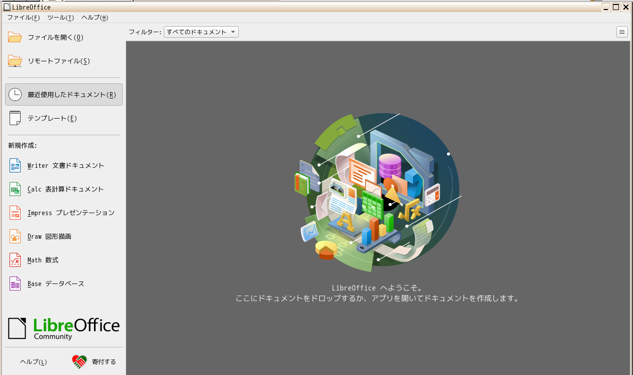 オフィススイートとして、「LibreOffice」を使用します。