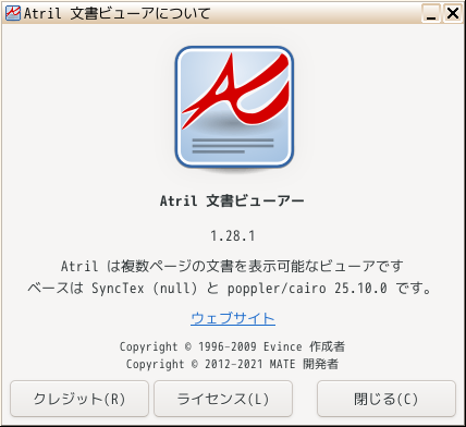 1. 概要 ドキュメントビューアとして。「Atril」を使用します。 2. インストール 「OctoPkg」で、「atril」を検索して、インストールします。 3. 起動 「スタート」→「オフィス」→「Artil Document Viewer」