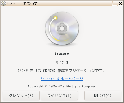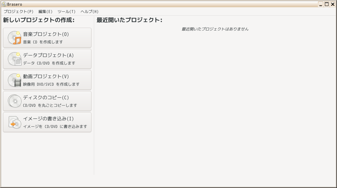 「Brasero」は、光学ディスク(CD・DVD)のライティングソフトです。