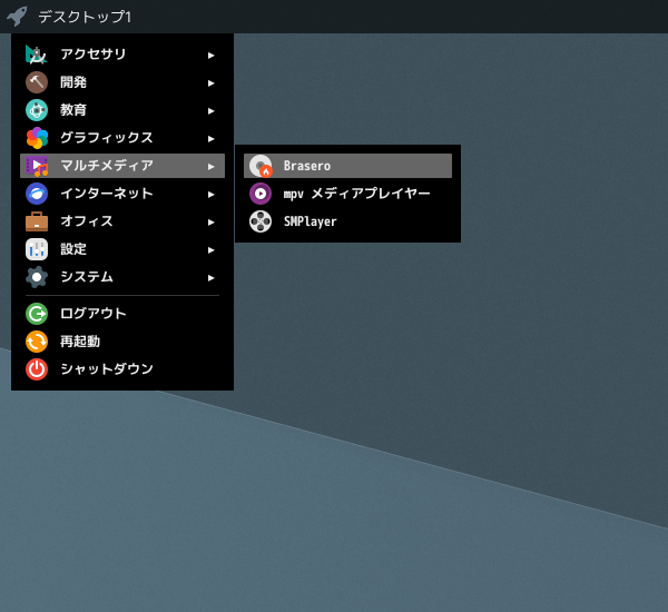 1. 概要 「Brasero」は、光学ディスク(CD・DVD)のライティングソフトです。 2. インストール 「OctoPkg」で、「brasero」を検索して、インストールします。 3. 起動 「スタート」→「マルチメディア」→「Brasero」